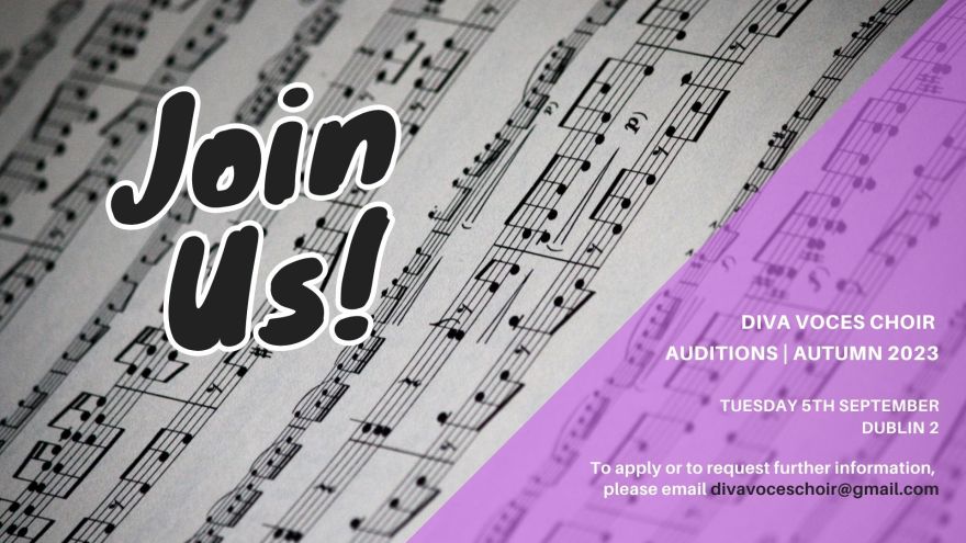 Diva Voces is hosting auditions on Thursday 5 September in Dublin 2.